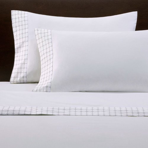 300TC 100% Cotton Sateen in Echo's own Peek-A-Boo construction; Crisp White sheet w/ coordinating grid print peeking to solid Citrus on flat sheet hem and pillow case cuffs T300 100% cotton sateen fabric with pieced cuff.../ Echo Fan Floral Sheet Set - White - Twin / Twin Sheet